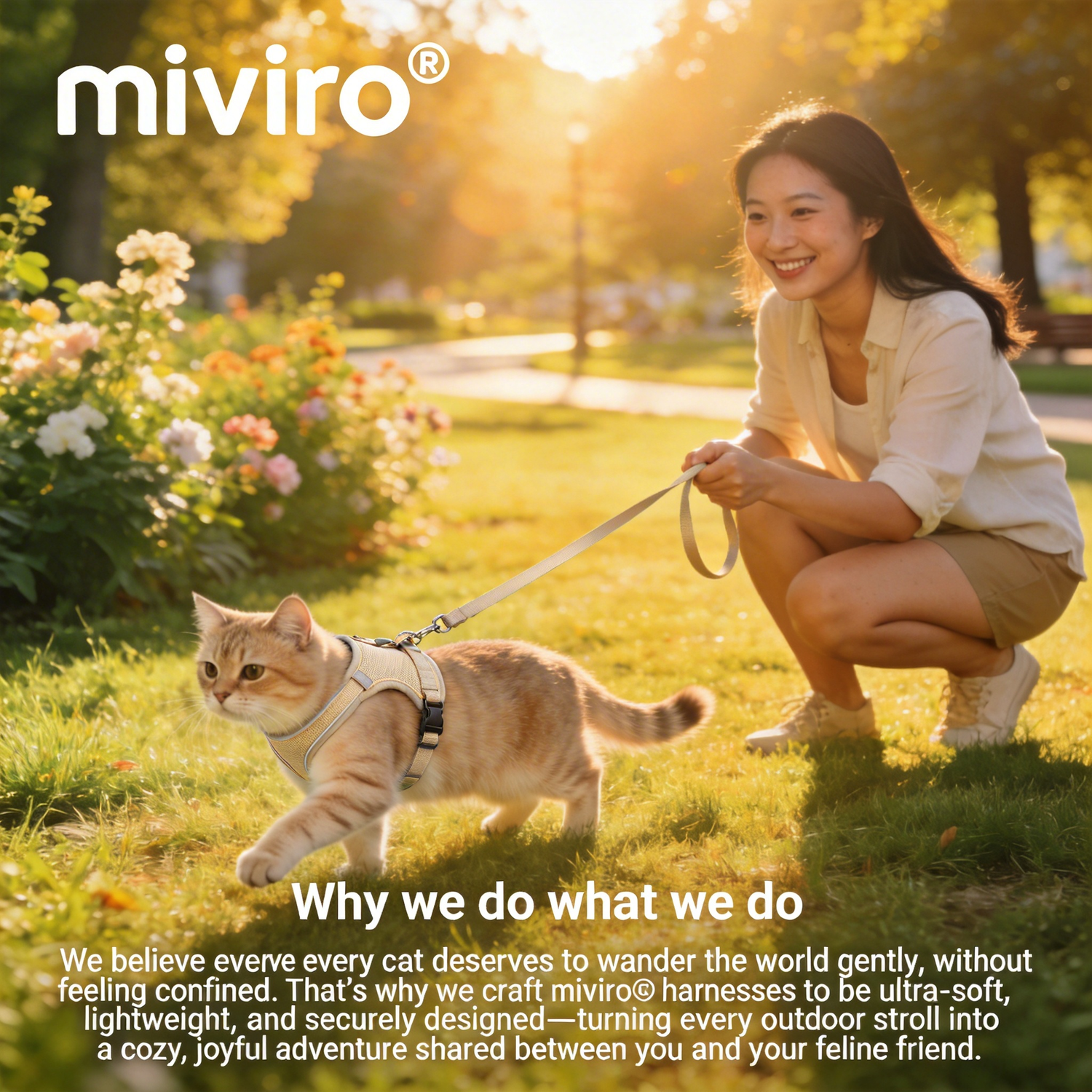 "Why we do what we doWe believe every cat deserves to wander the world gently, without feeling confined. That’s why we craft miviro® harnesses to be ultra-soft, lightweight, and securely designed—turning every outdoor stroll into a cozy, joyful adventure shared between you and your feline friend."